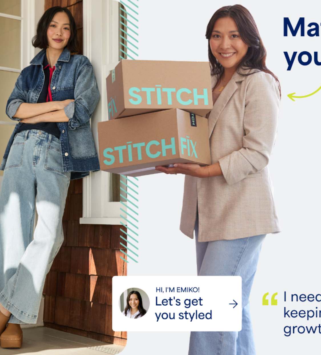 Your online Stylist is your partner in style. They’re here to listen and help you achieve your best personal style. The more you share with us, the more your online Stylist will know what you love. Your style quiz answers help us get an idea of pieces you’ll like and match you with a Stylist. With each order, they get to know your style even better via the items that have (and haven’t) worked for you.